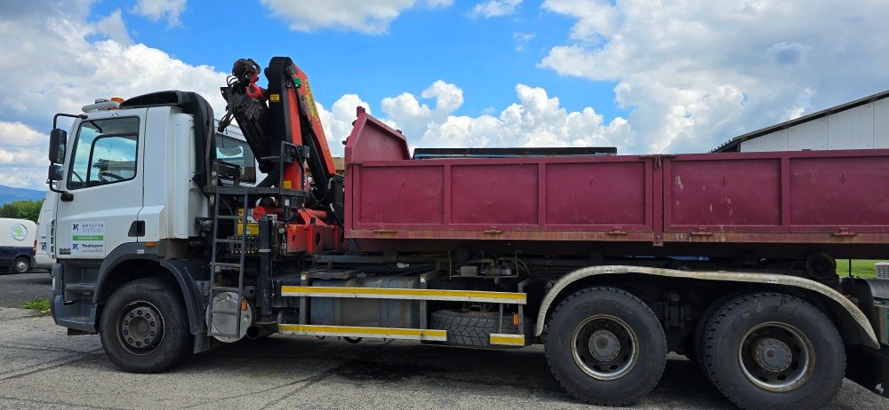kontejnerový nosič včetně hydraulické ruky, suťový + valníkový kontejner oba s délkou ložné plochy 6 metrů