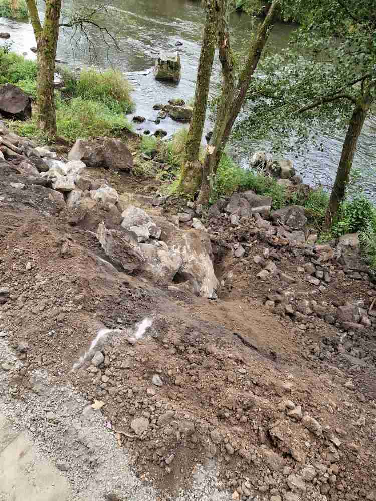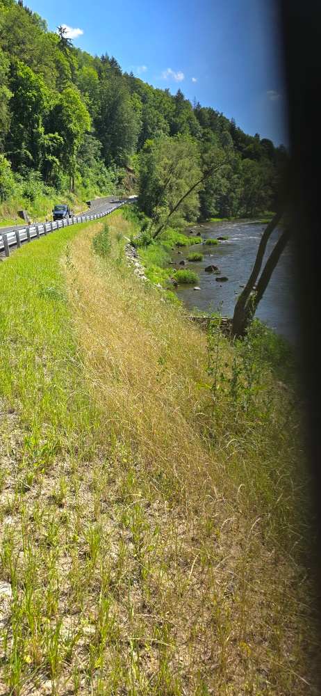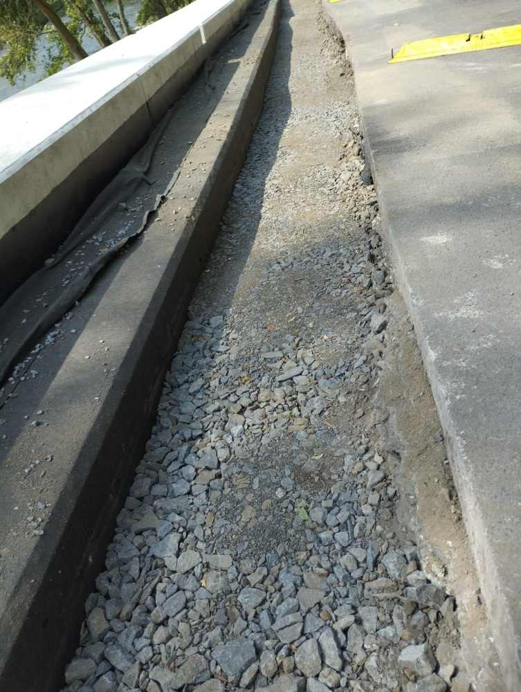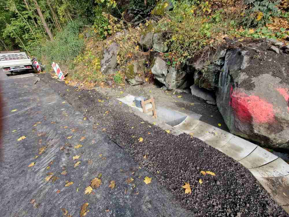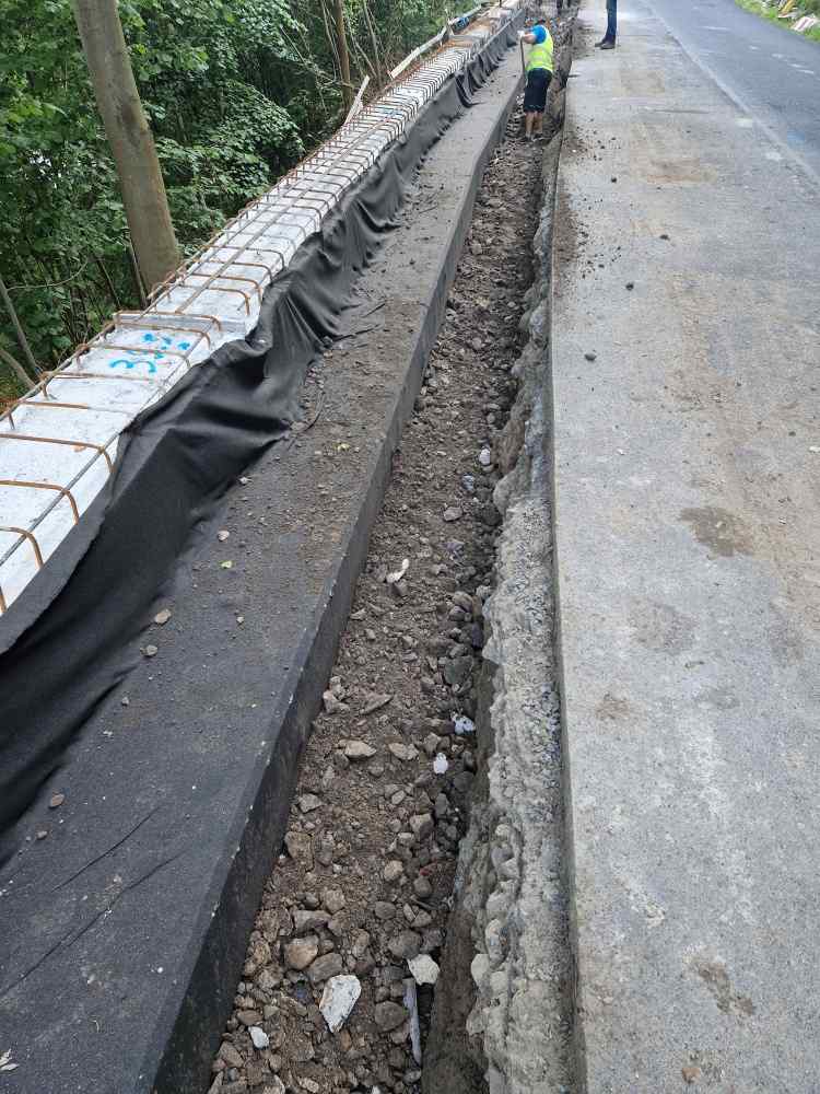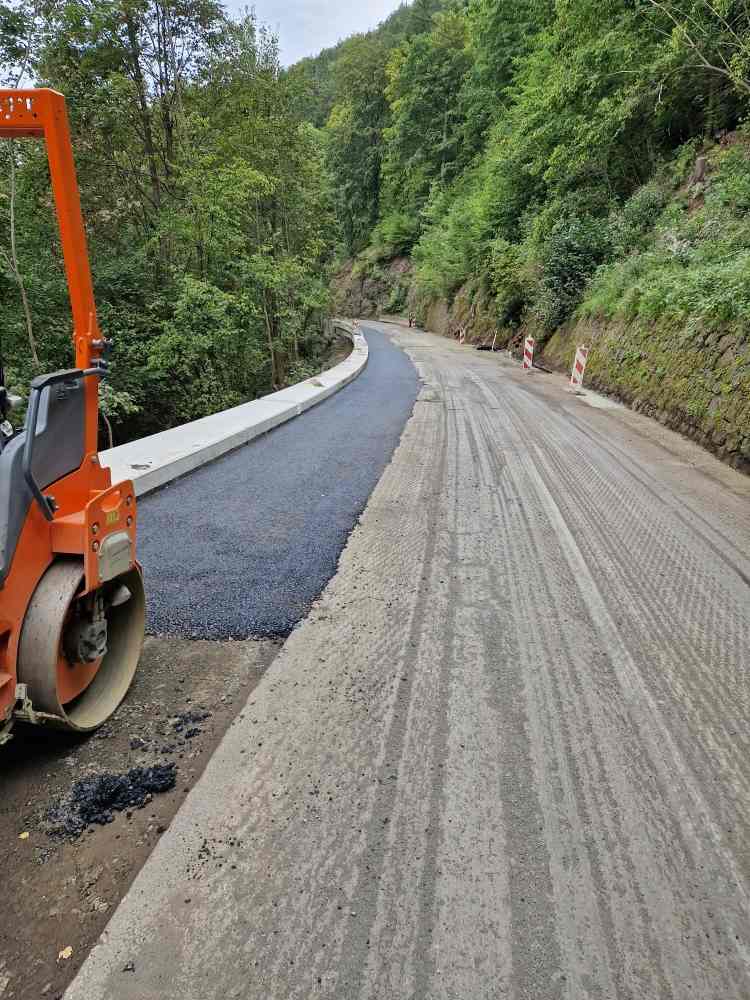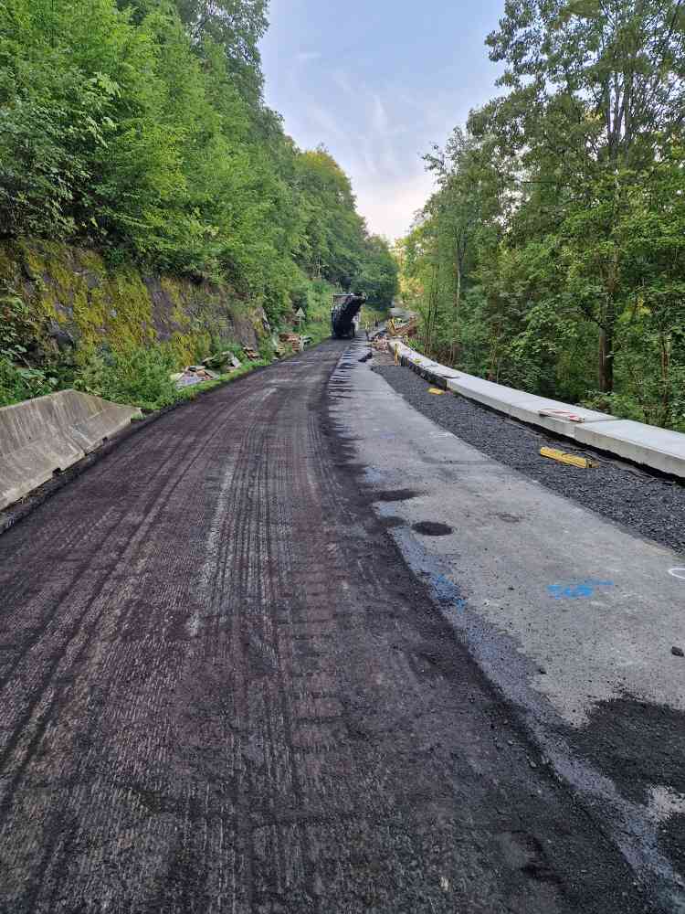 Projekt uvažoval hlavně statické zajištění komunikace. Zde jsme vybudovali sérii tří železobetonových opěrných zdí na pilotovém založení. Mimo jiné zde byla také sanace svahu, kdy ke korytu řeky přišly největší kameny frakce 1000+ a následně se postupně prosypávaly menšími. Gabionová opěrná stěna byla naopak vybudována proti sesuvu svahu na od břehu odlehlé straně vozovky. V rámci stavby se zhotovoval kompletní systém odvodnění včetně propustků. Část stavby je odvodněna pomocí příkopových žlabů, druhá část má rigol dlážděna z žulových kostek.
