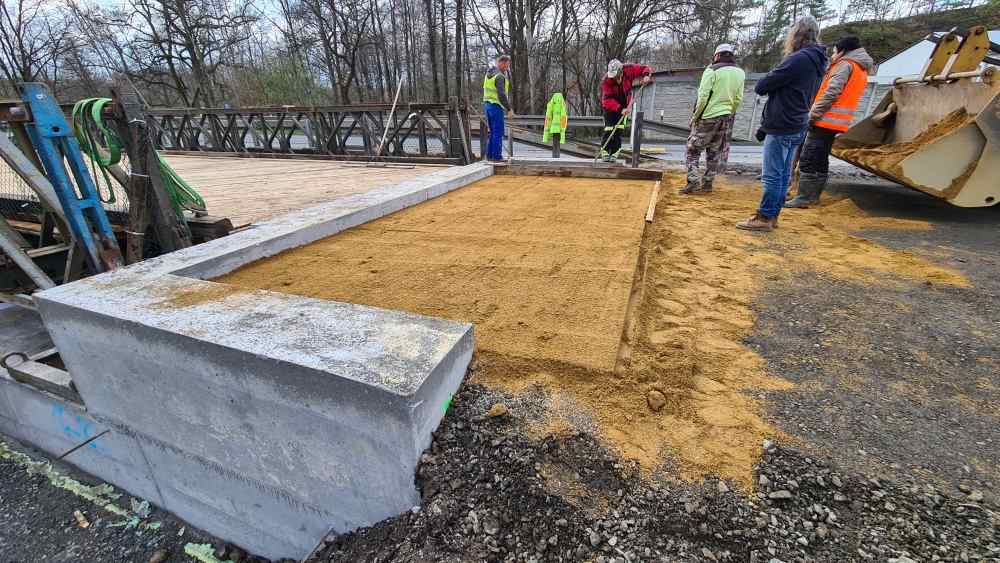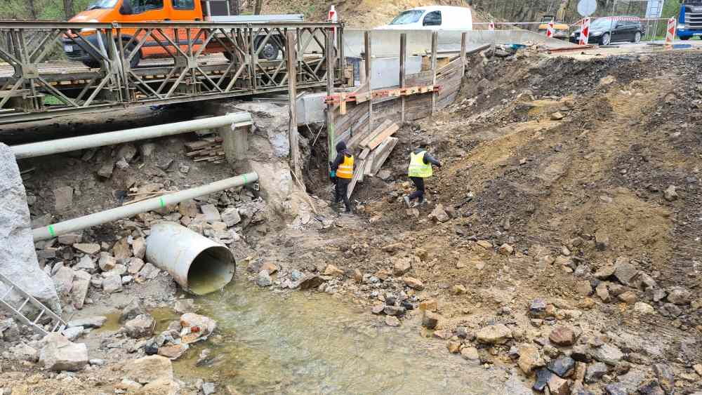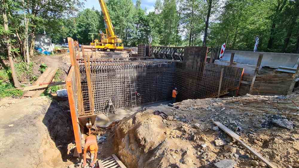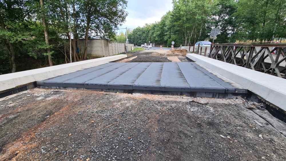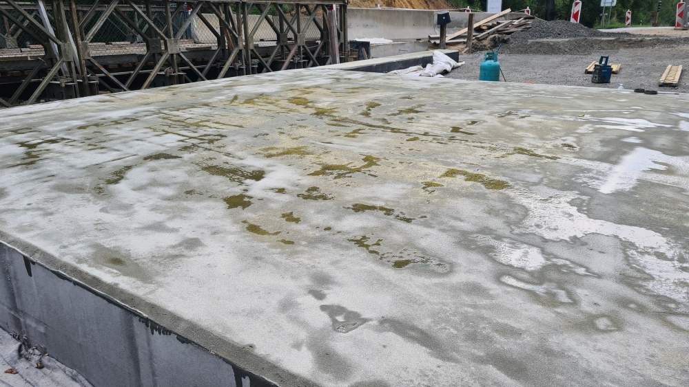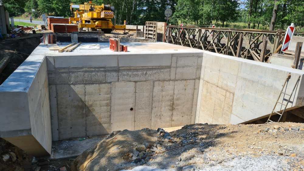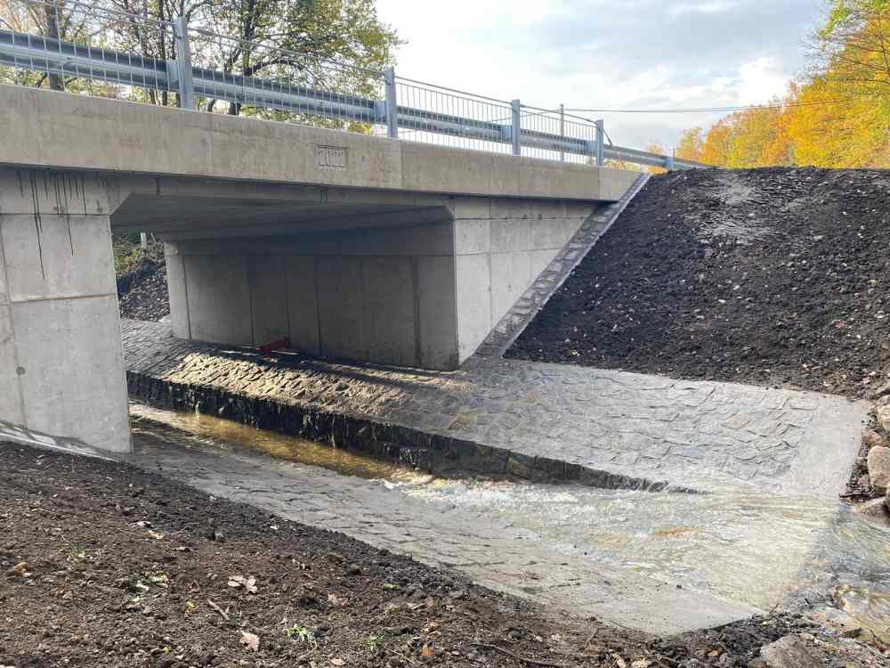 Jedná se o rámovou monolitickou konstrukci o 1 poli, která je vetknutá do plošných základů. Tloušťka NK je navržena min. 500 mm s příčnými náběhy k římsám na min. tloušťku 250 mm. Mostní závěry a ložiska nejsou navrženy. Dilatace mostu bude zajištěna řezanou spárou ve vozovce s elastickou modifikovanou zálivkou. Na mostě je vozovkové souvrství skladby: ACO 11+ tl. 40 mm, spojovací postřik, ACL 16+ tl. 60 mm, spojovací postřik s emulzí, MA11 tl. 35 mm, NAIP 5 mm a pečetící vrstva. Celková tloušťka 140 mm. Římsy budou ŽB šířky 850 mm. Na římsách bude osazeno zábradelní svodidlo výšky 1100 mm, s úrovní zádržnosti H2. Koryto mostu bude vydlážděno z lomového kamene. Po celou dobu rekonstrukce mostu bude uzavřen provoz na silnici č. II/222 v místě mostu. Doprava bude převedena na mostní provizorium