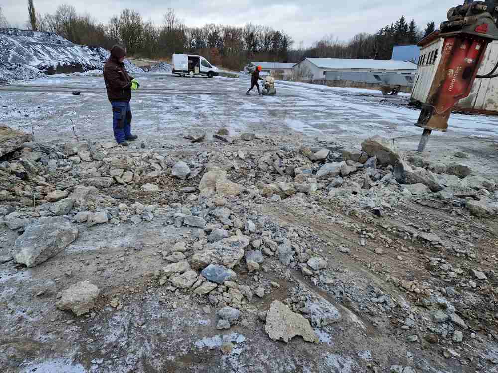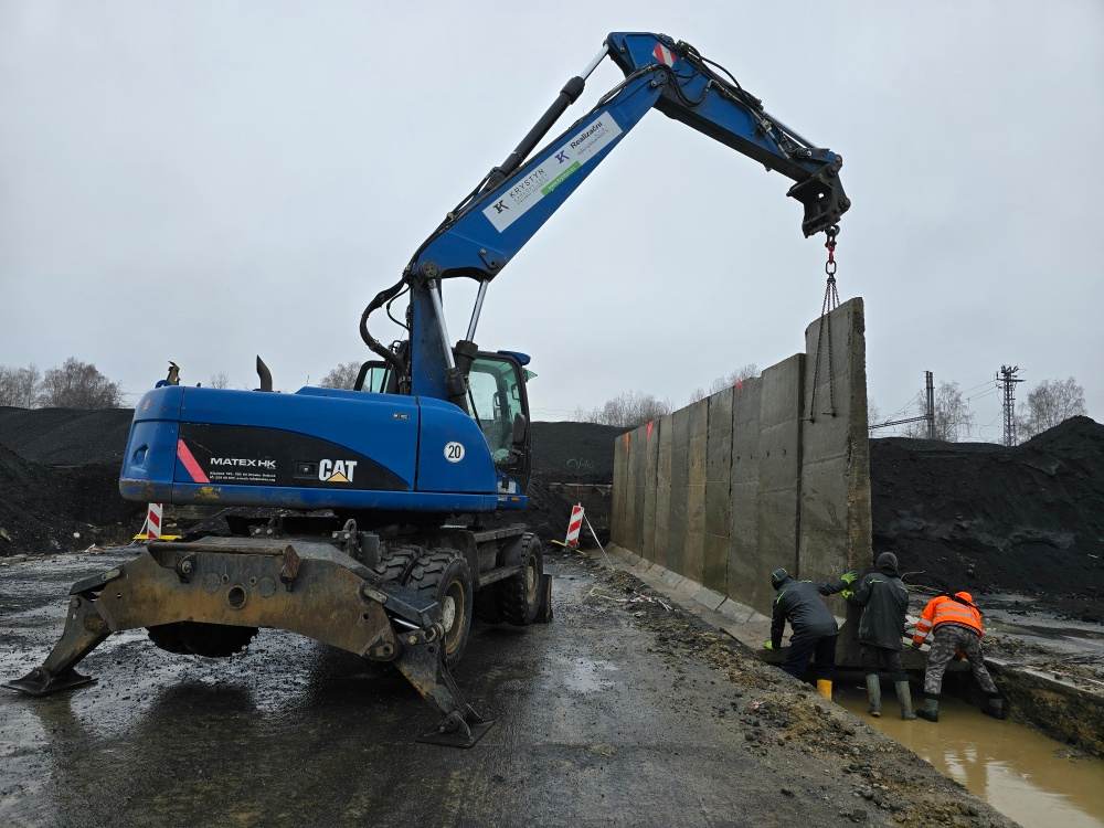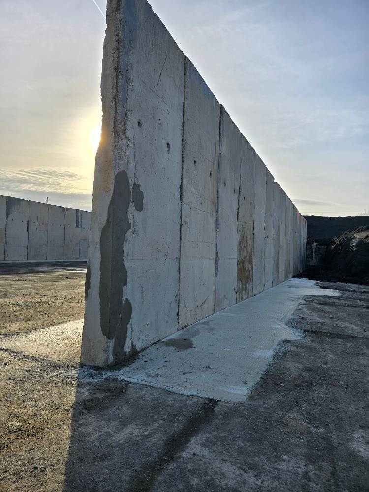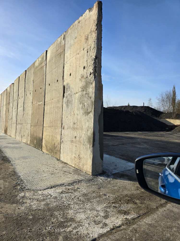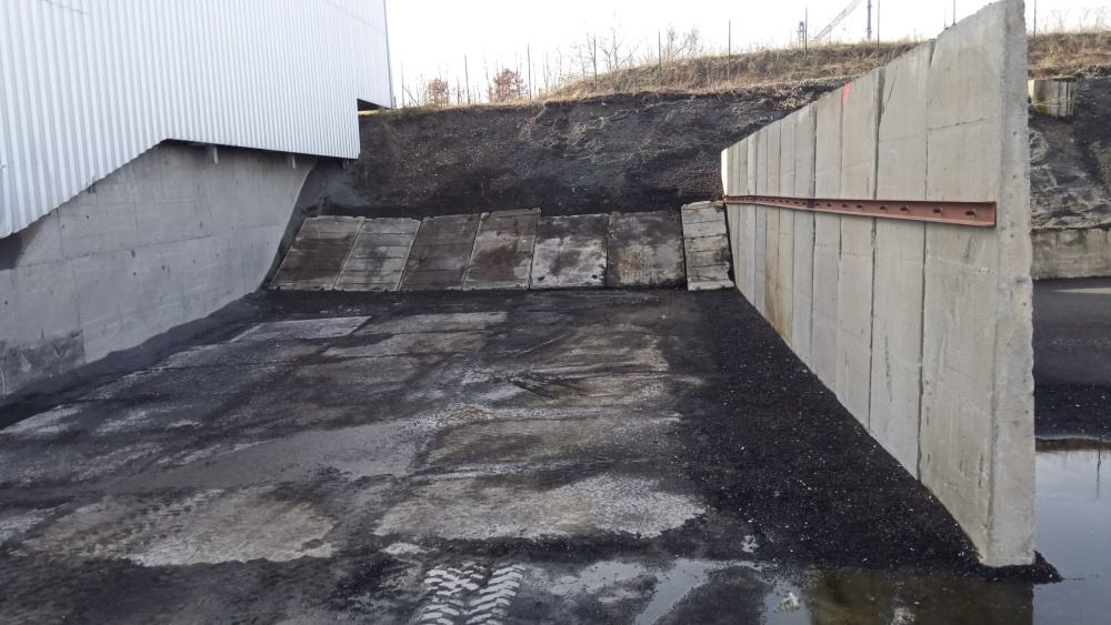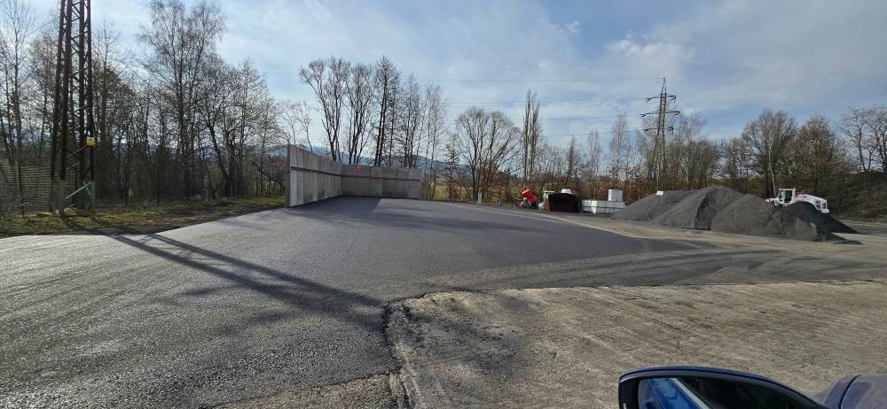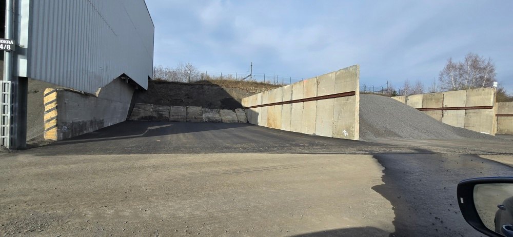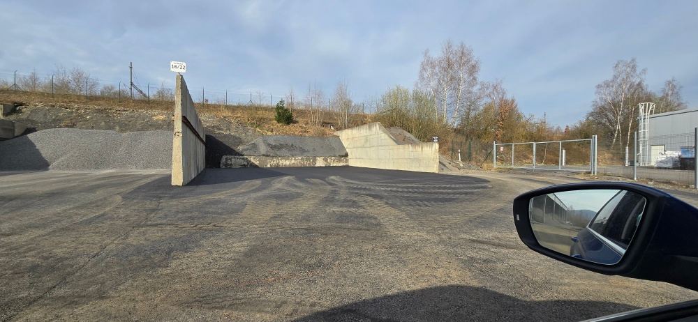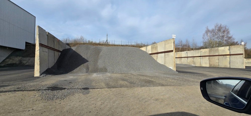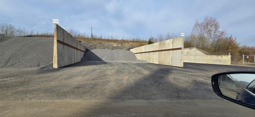 Na obalovně asfaltových směsí v Dalovicích jsme ze starších gref (betonová dělící stěna) dovezených z jiné obalovny, kde kóje rušili, vytvořili celkem na třech místech skladovací kóje na kamenivo.