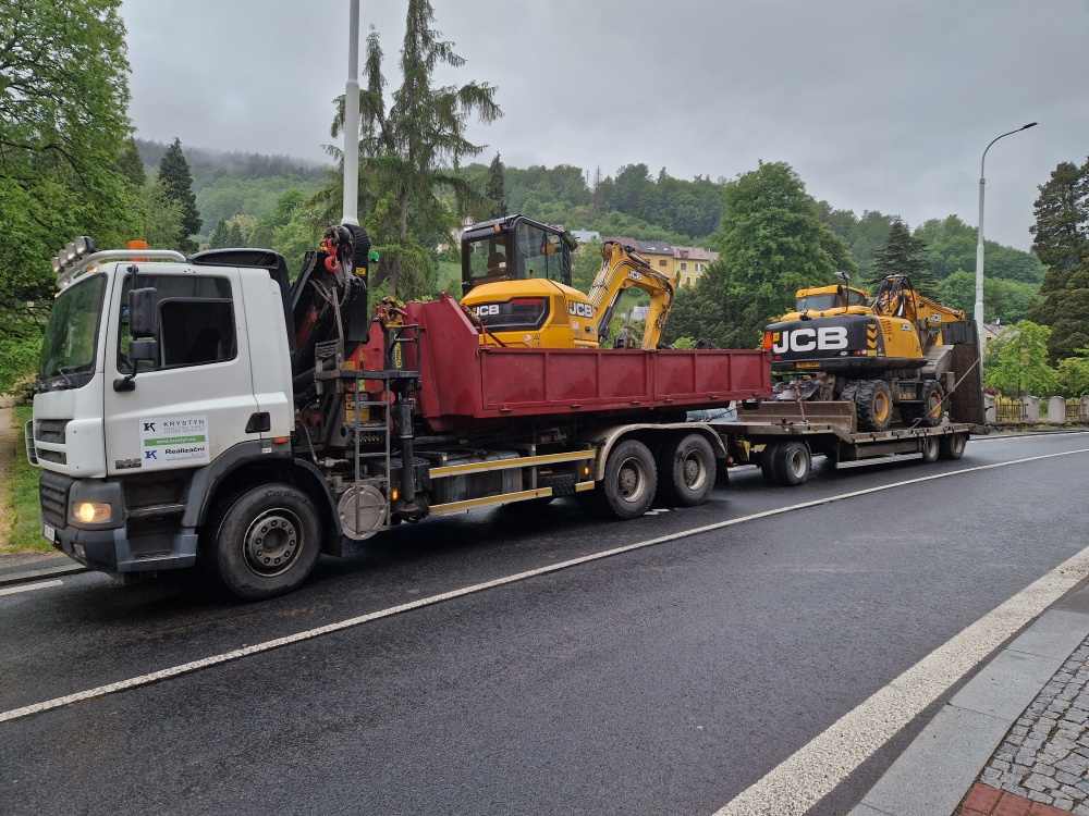 přeprava strojů, nadměrných nákladů, 30 tun nosnost, délka ložné plochy 8 metrů